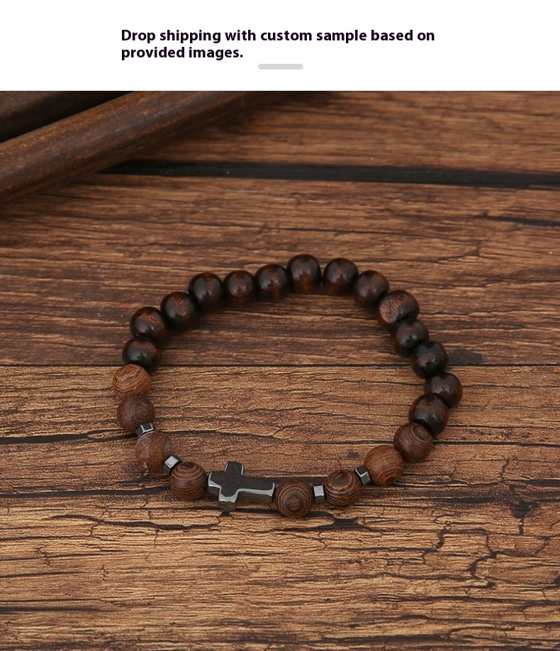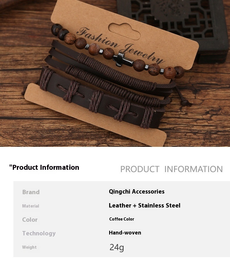 Amazon Foreign Trade Wholesale Punk Retro Hand-knitted Accessory Men's Coffee Color Alloy Cross Scripture Bracelet