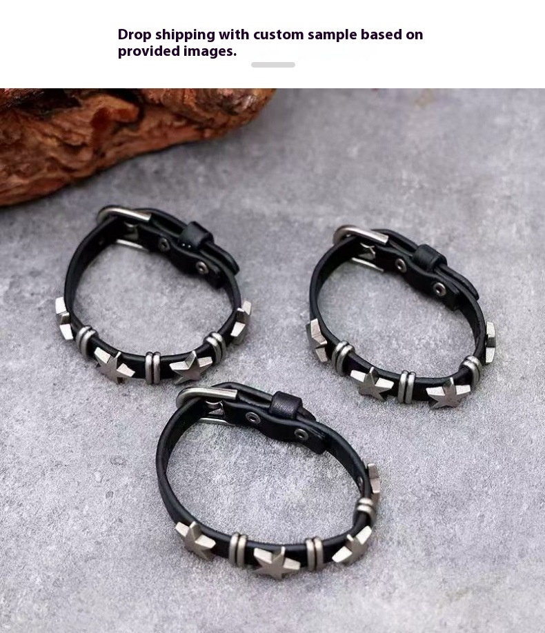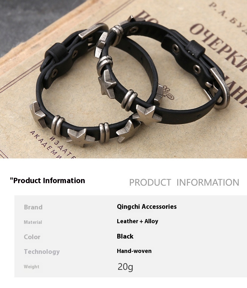 Men's Ornament Personality Street Punk Five-pointed Star Retro Cattle Leather Bracelet