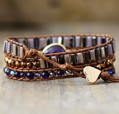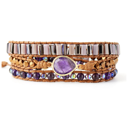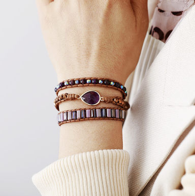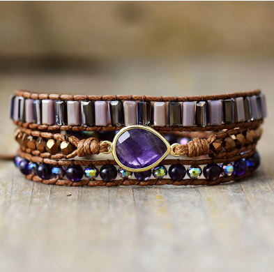 Natural Stone Amethyst Handmade Bracelet European And American Vintage Weave Bracelet Ornament