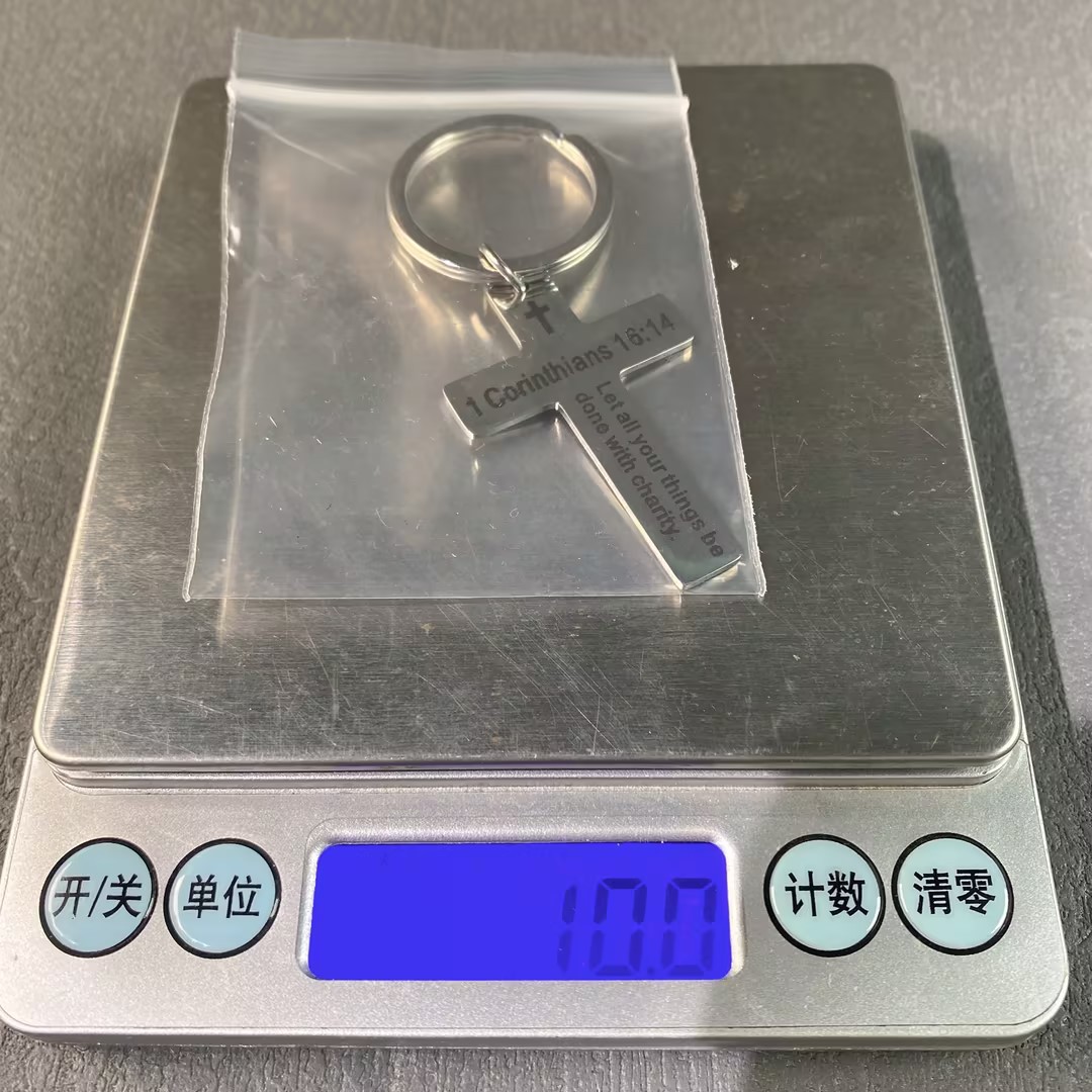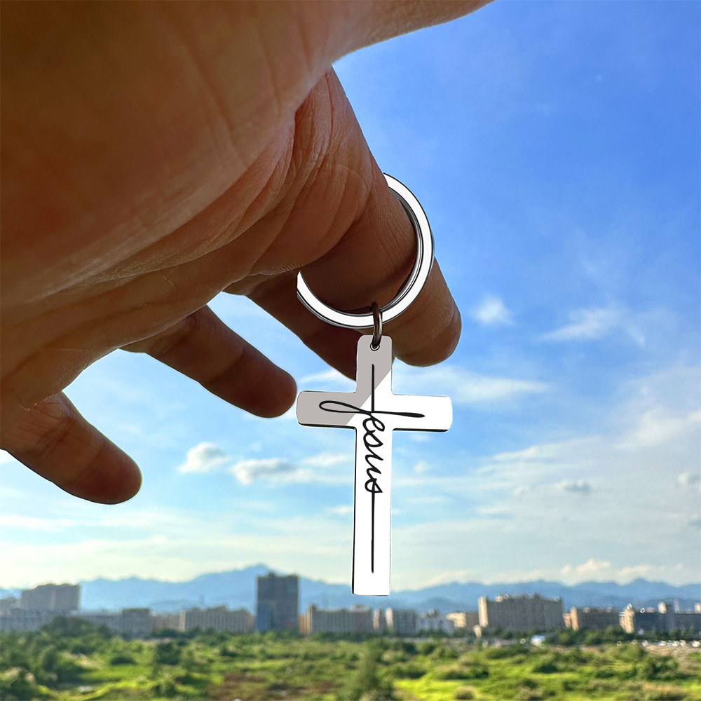 Personality Trend Stainless Steel Faith Cross Scripture Lettering Metal Keychains