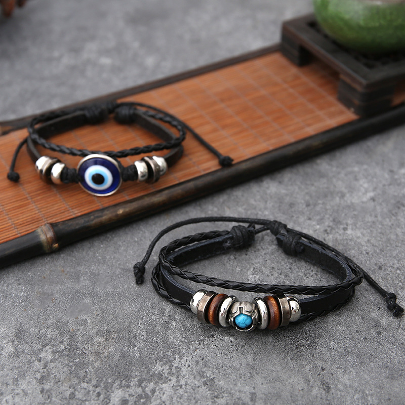 Personalized Bracelet Men's And Women's Suits Bracelet Alloy Woven Wax Rope Adjustable Leather Set Eyes