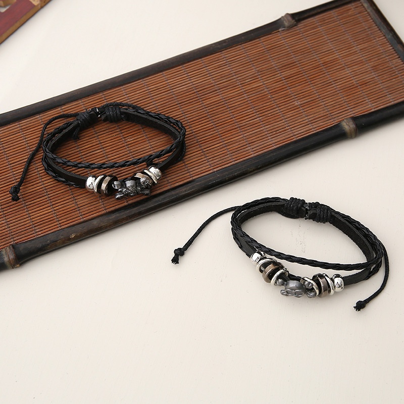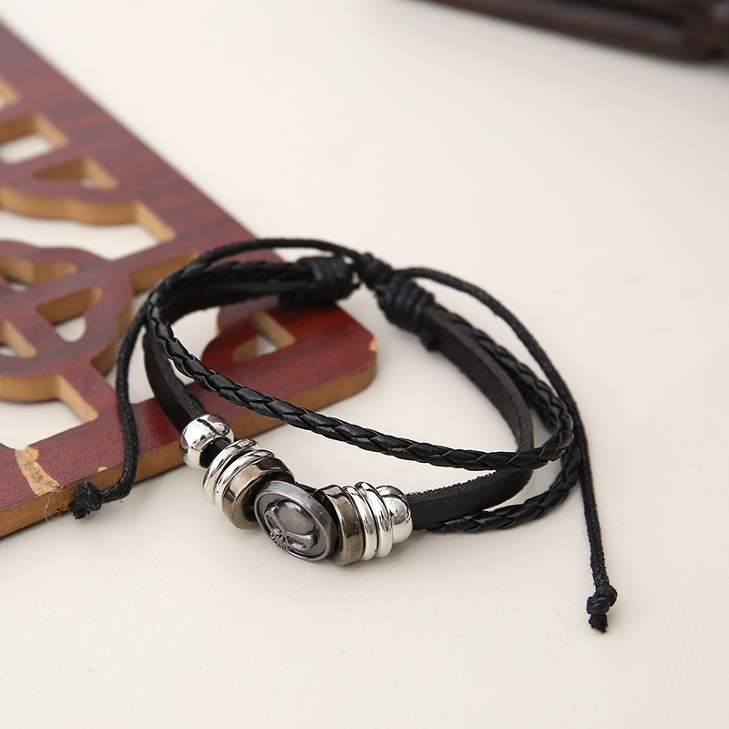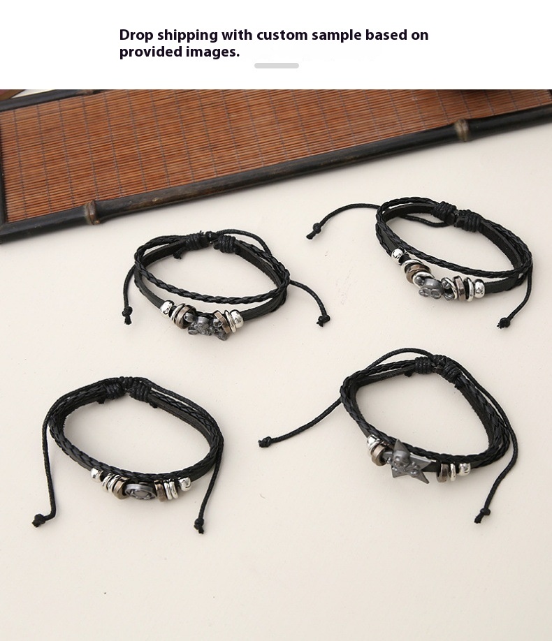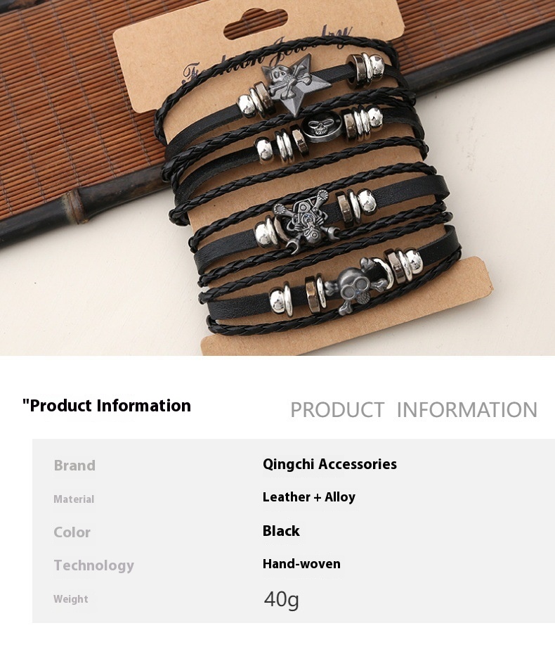 Punk Leather Bracelet Men's Hand Decoration Alloy Bracelet Fashion Woven Skull