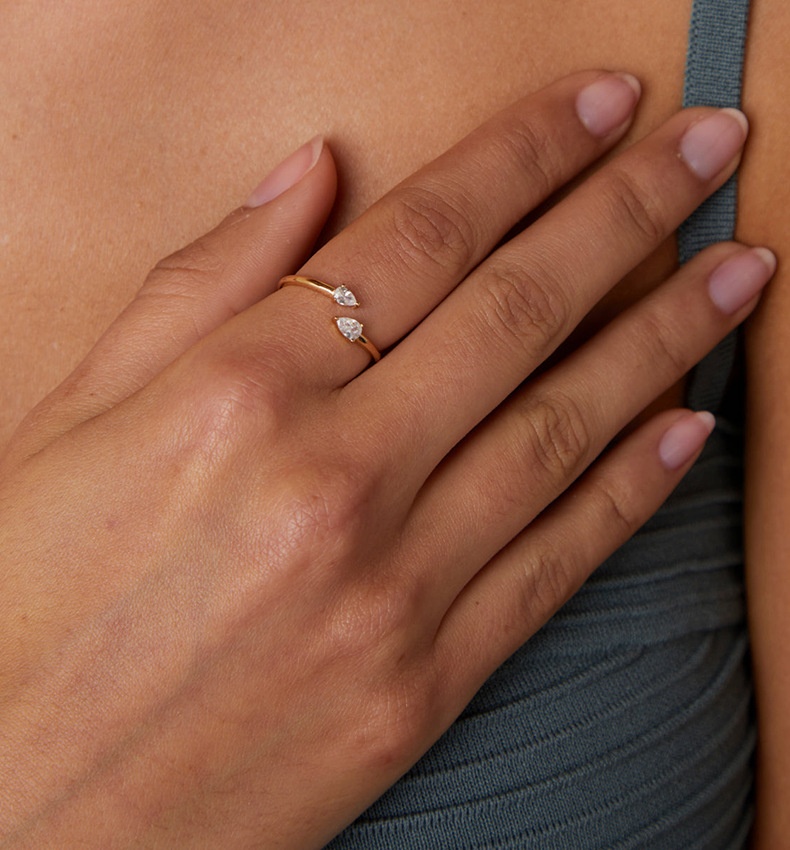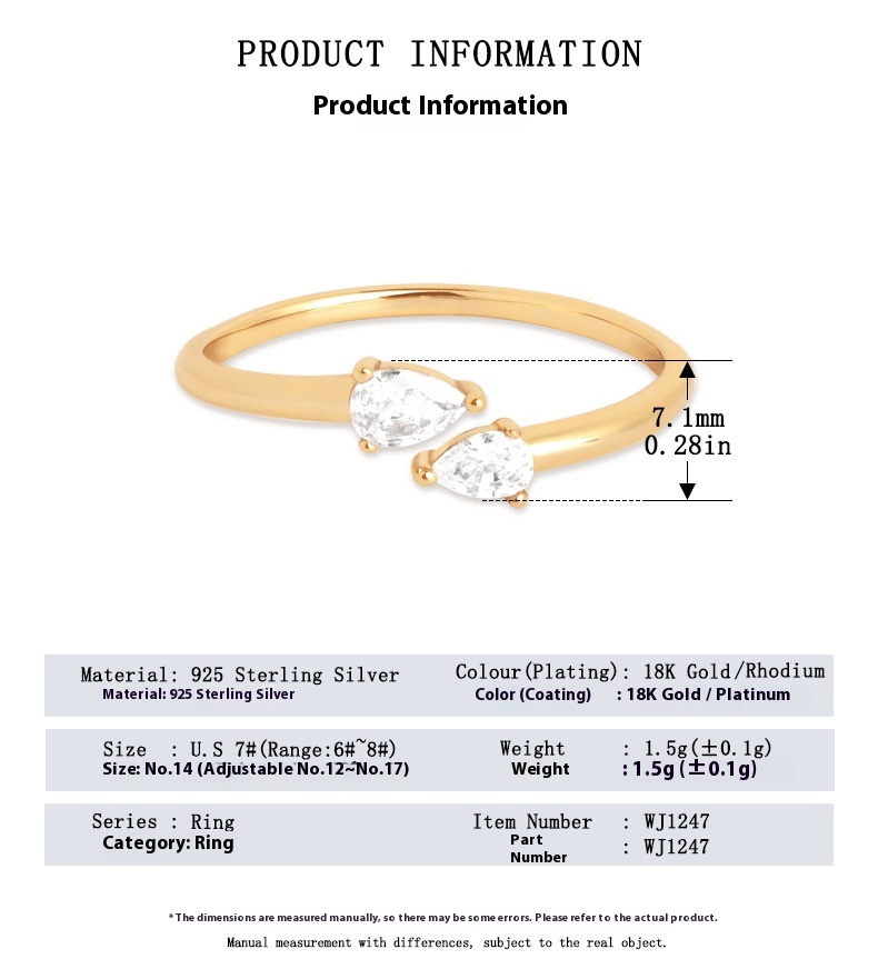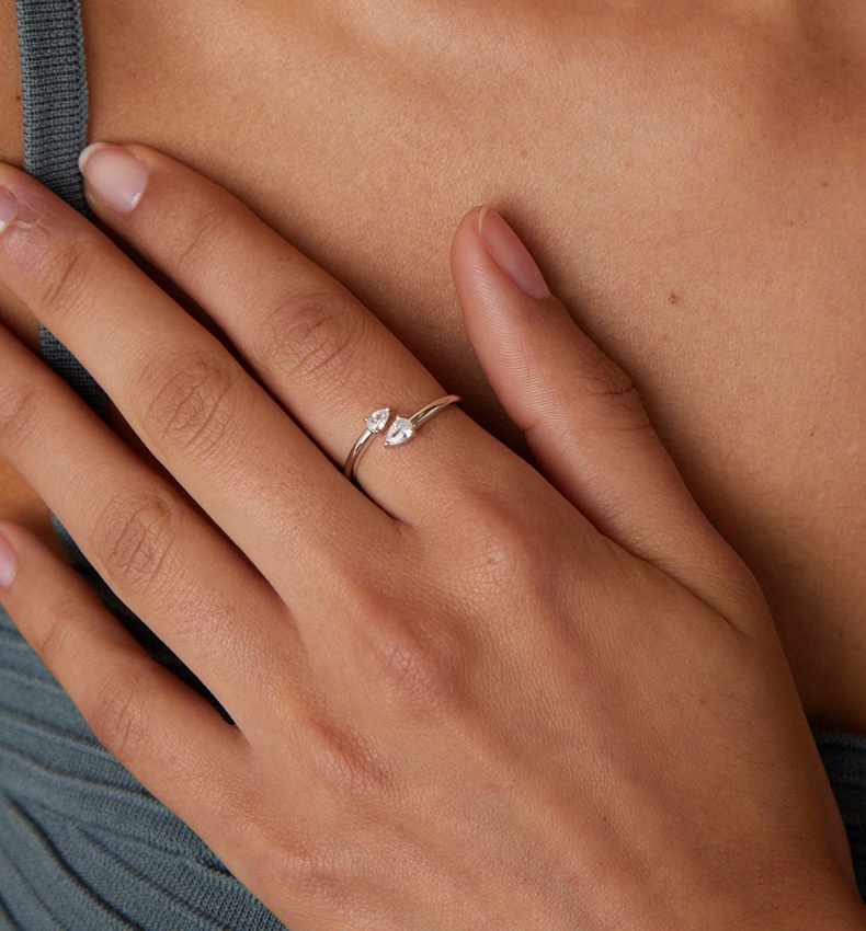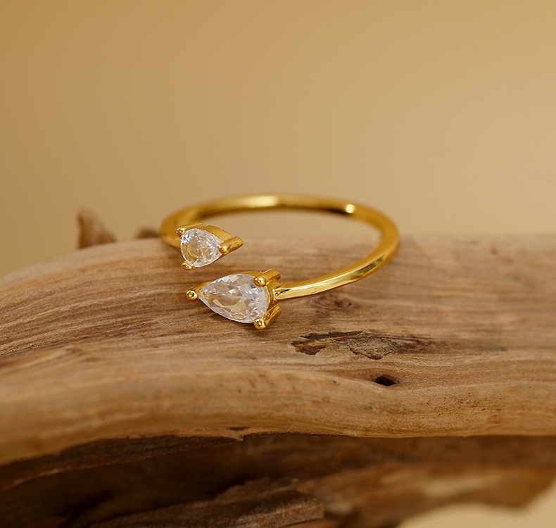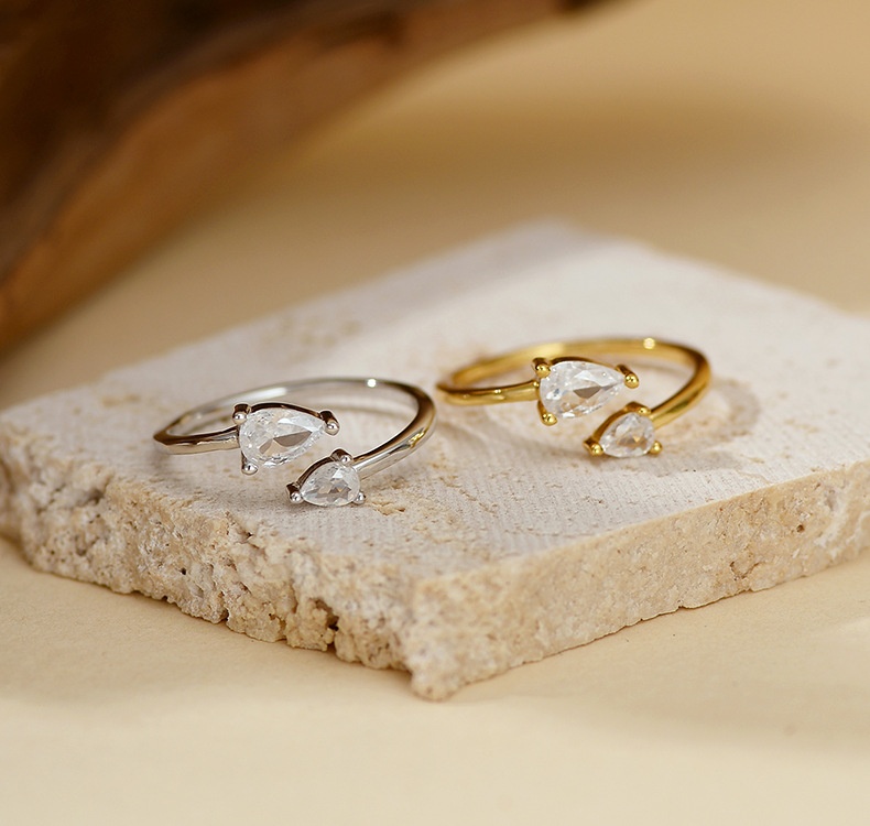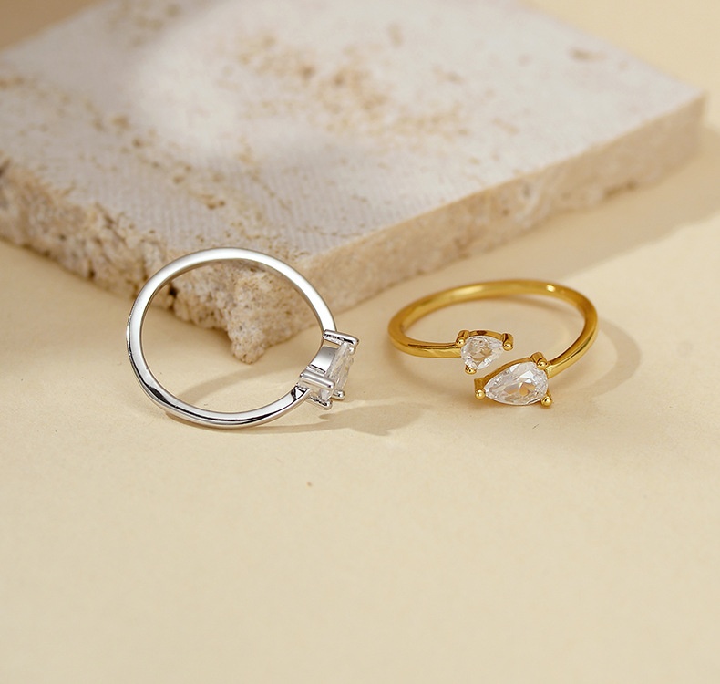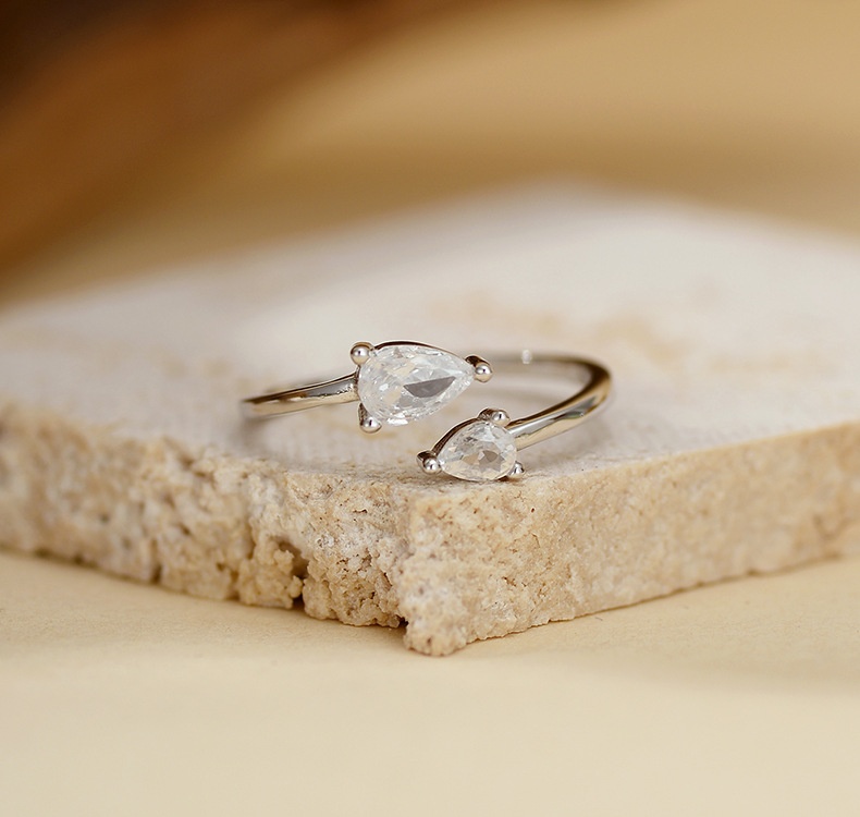 Silver Water Drop Zircon Opening Light Luxury Fashion Commuter Neutral Ring