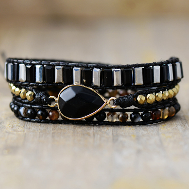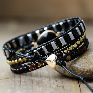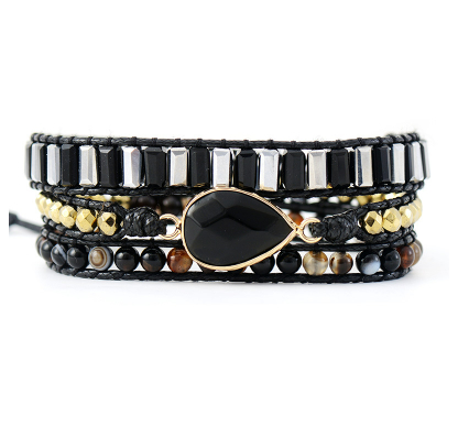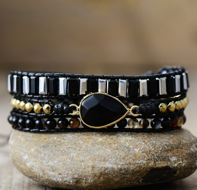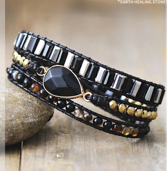 Vintage Ethnic Style Natural Stone Crystal Leather Rope Handmade Bracelet